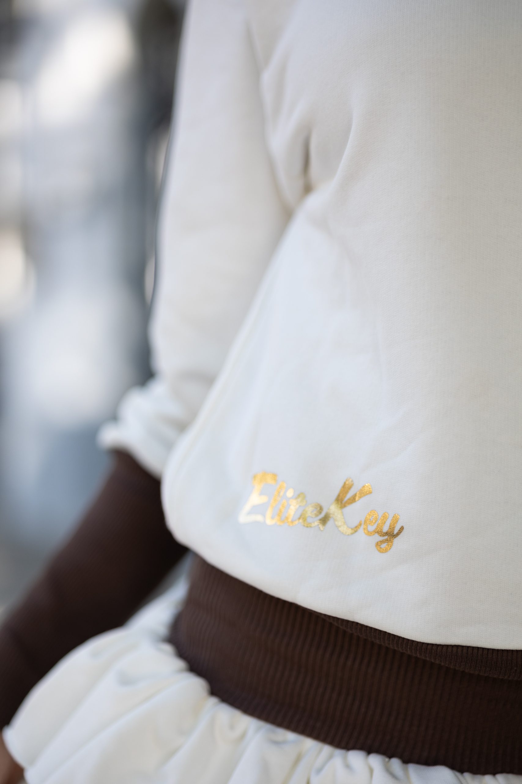 • Ekskluzywne złote akcenty: Delikatne złote hafty na rękawach, wielki złoty napis “How do I look?” na przodzie oraz logo EliteKey dodają bluzie eleganckiego charakteru. Kaptur ozdobiony jest subtelnym złotym haftem.